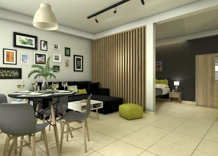 Apartmán Comfy Center Rodos - Green je 1-ložnicové ubytování s sejfem a úschovnou zavazadel, nachází se ve městě Asgourou. Přímořská brána je 10 minut jízdy autem od tohoto apartmánu.